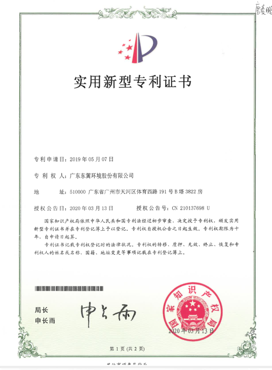 喜訊!東籬環(huán)境再獲一國家實(shí)用新型專利授權(quán)!