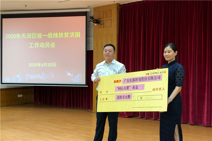 眾志成城,共克時艱。為助力打贏疫情防控和脫貧攻堅這兩場“戰爭”,天河區統一戰線參與扶貧濟困工作動員會于今天正式召開,會議上表彰了一批在抗疫過程中有高度責任心和使命感的企業、組織和個人。東籬環境因在抗疫過程中的突出貢獻,被中共廣州市天河區委統戰部和廣州市天河區慈善會聯合授予“2020年天河區統一戰線抗擊疫情突出貢獻獎”,天河區領導給東籬環境頒獎。