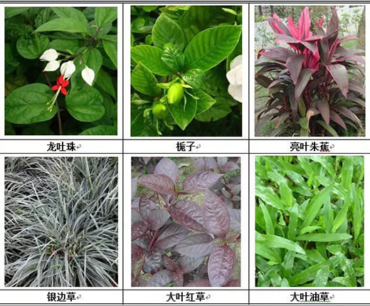(2)陰生環(huán)境適用植物:光照條件較差的地帶,適宜選擇喜陰、中性和耐陰的植物種類。