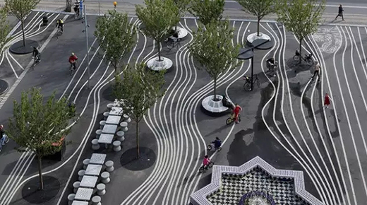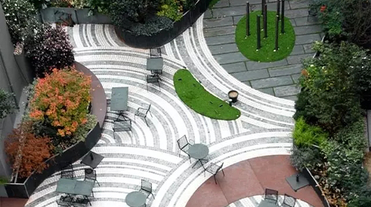 在萬千城市景觀元素里,鋪裝占據這整個景觀的大筆江山。它不僅具有組織交通和引導游覽的功能,