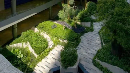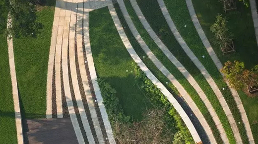 還對空間進行了二次分割,為人們提供著良好的休息、活動場地;同時創造出優美的地面景觀,增強景