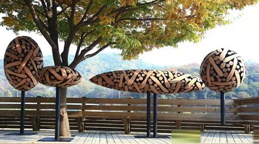 景觀小品在設(shè)計(jì)創(chuàng)作過(guò)程中,可以廣泛應(yīng)用裝置藝術(shù)、環(huán)境藝術(shù)、極簡(jiǎn)藝術(shù)等理念