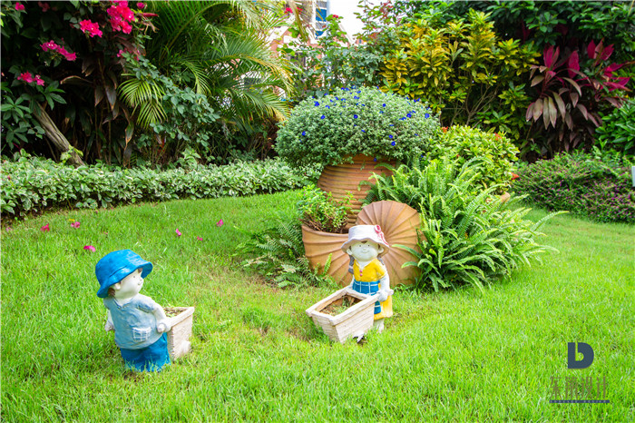景觀小品方面,通過設計英式柱廊、雕塑、疊泉、花缽、花箱等景觀元素,配合組合擺放或者圍合等方式形成不同的空間以適應不同的功能需求,營造出極致浪漫的具有濃郁英式風格的生活情趣和氛圍。